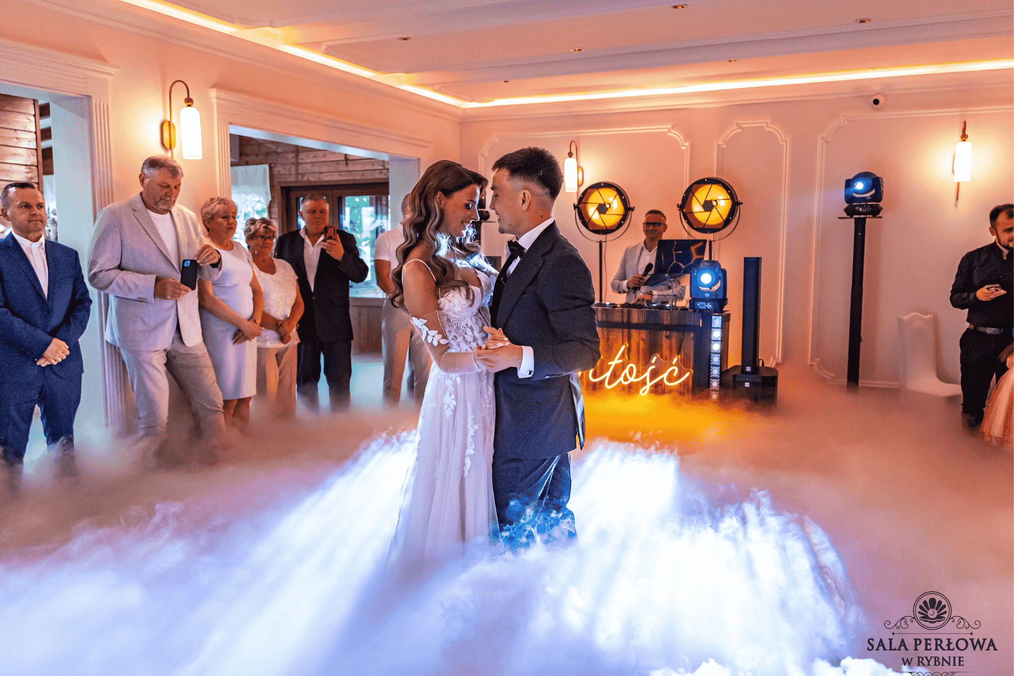Przemyślany układ sali zapewnia wygodę podczas zabawy, posiłków i rozmów przy stołach. To idealna przestrzeń do świętowania, tańczenia i wspólnego spędzania czasu – tak, aby Twoi goście czuli się swobodnie i wyjątkowo.